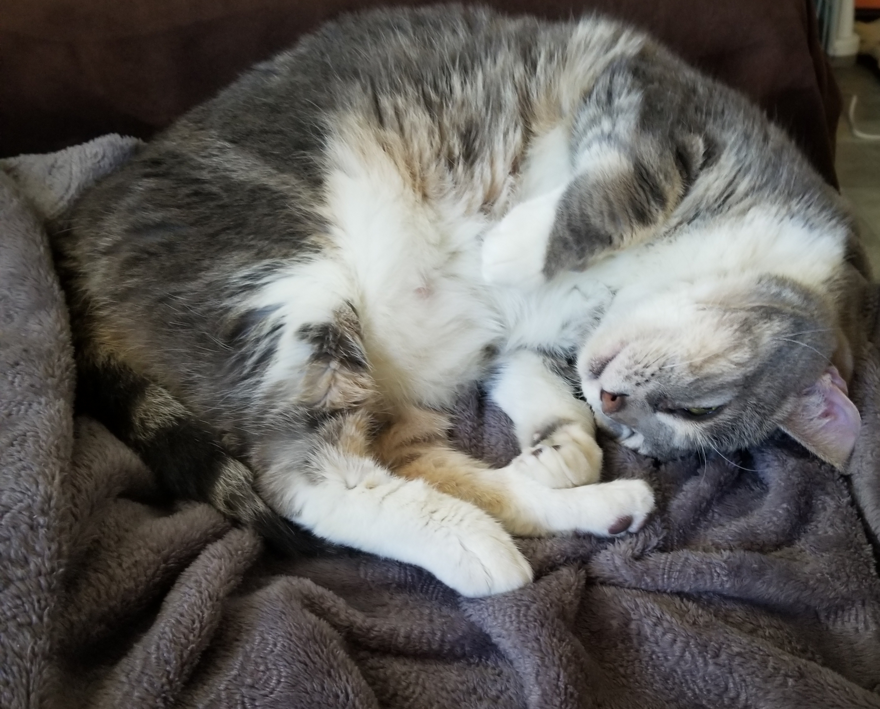 These days she is firmly settled in and enjoying the life of a pampered senior kitty, though she has some strong opinions on how my idea of “pampered” differs from hers and hasn’t quite figured out that she can let herself into the catio whenever she wants.